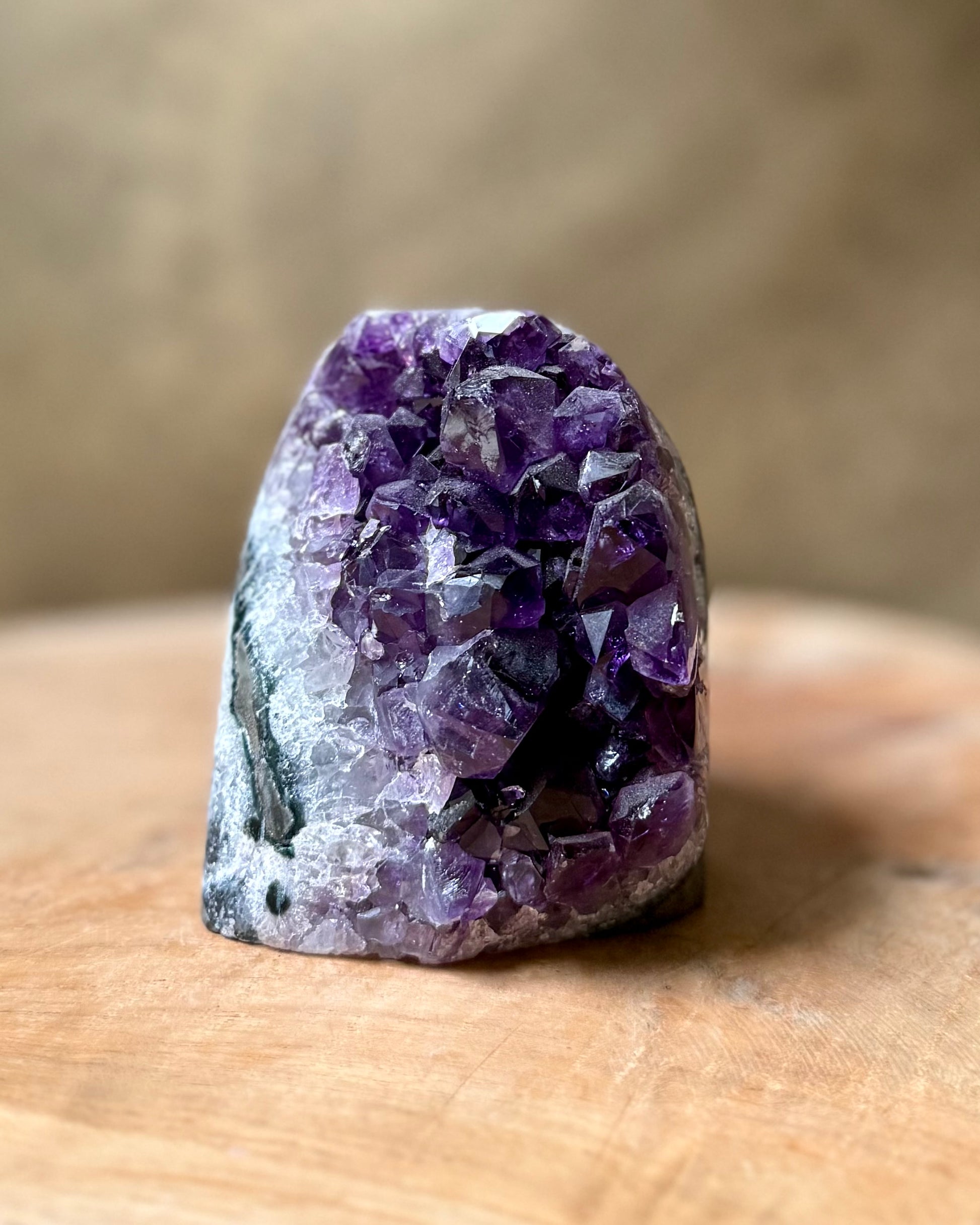 Amethist staat bekend om zijn kalmerende en beschermende werking. De steen wordt vaak geassocieerd met rust, balans en helderheid van geest. Ideaal voor in de woonkamer, slaapkamer, praktijkruimte of op een altaar.