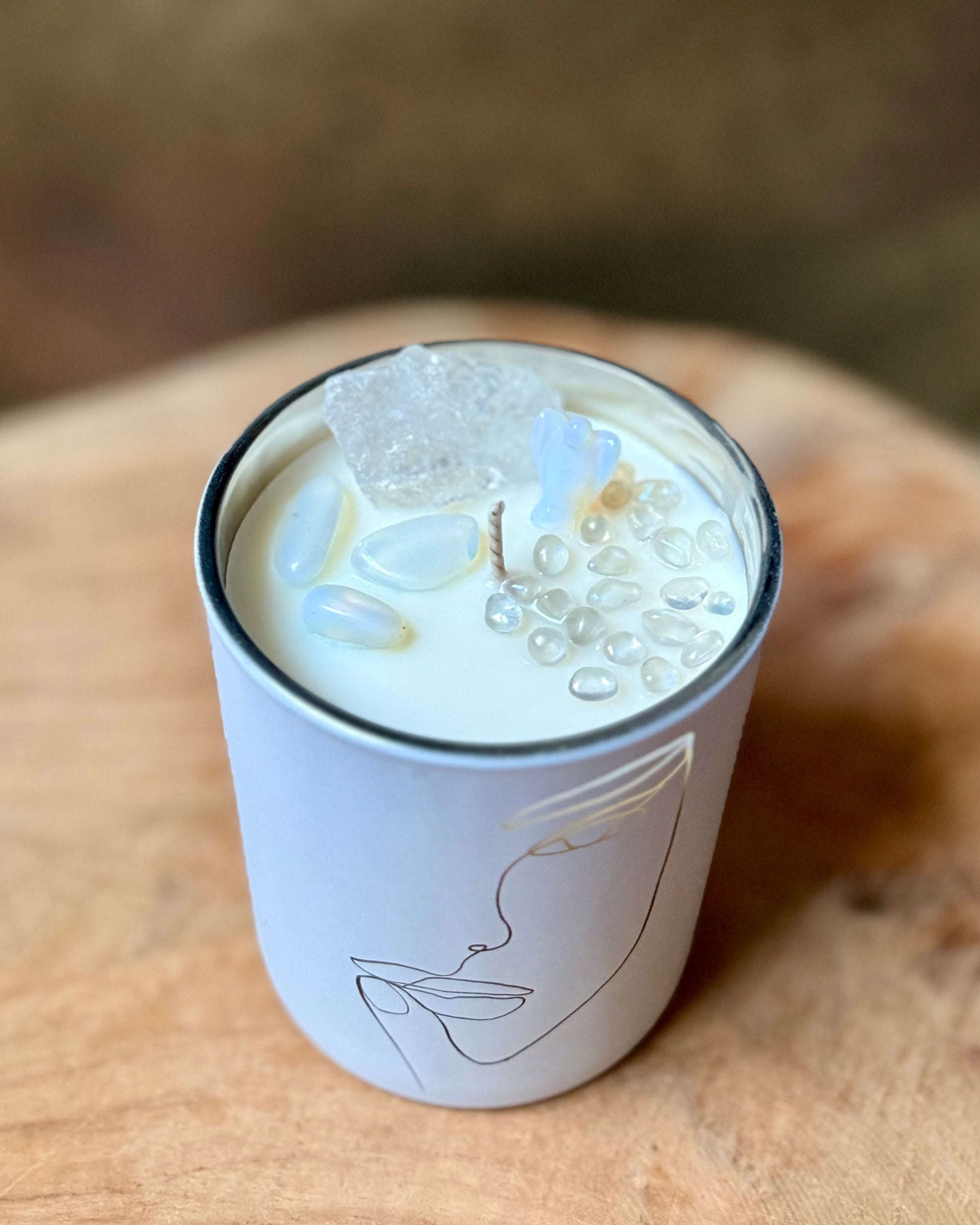 Een zachte, liefdevolle geurkaars die staat voor rust, bescherming en helderheid. Deze handgemaakte kaars met de geur Vanilla Jasmin Blossom brengt een lichte, etherische sfeer in huis – perfect voor momenten van ontspanning, meditatie of gewoon om even op adem te komen.