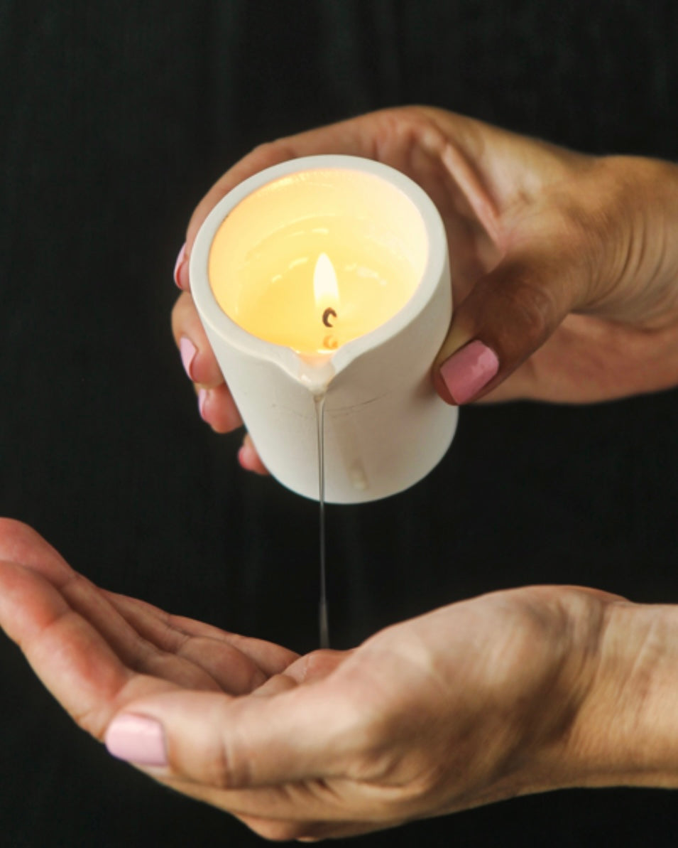 1) Steek de kaars aan en wacht totdat een laagje was is gesmolten (ca. 15-20 min)