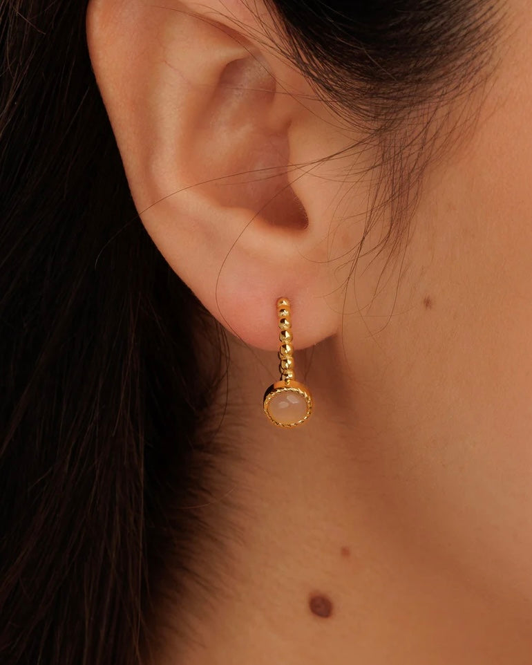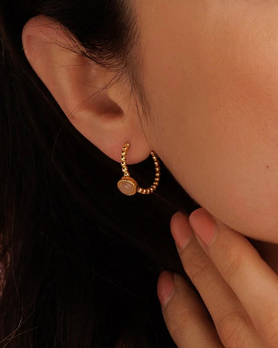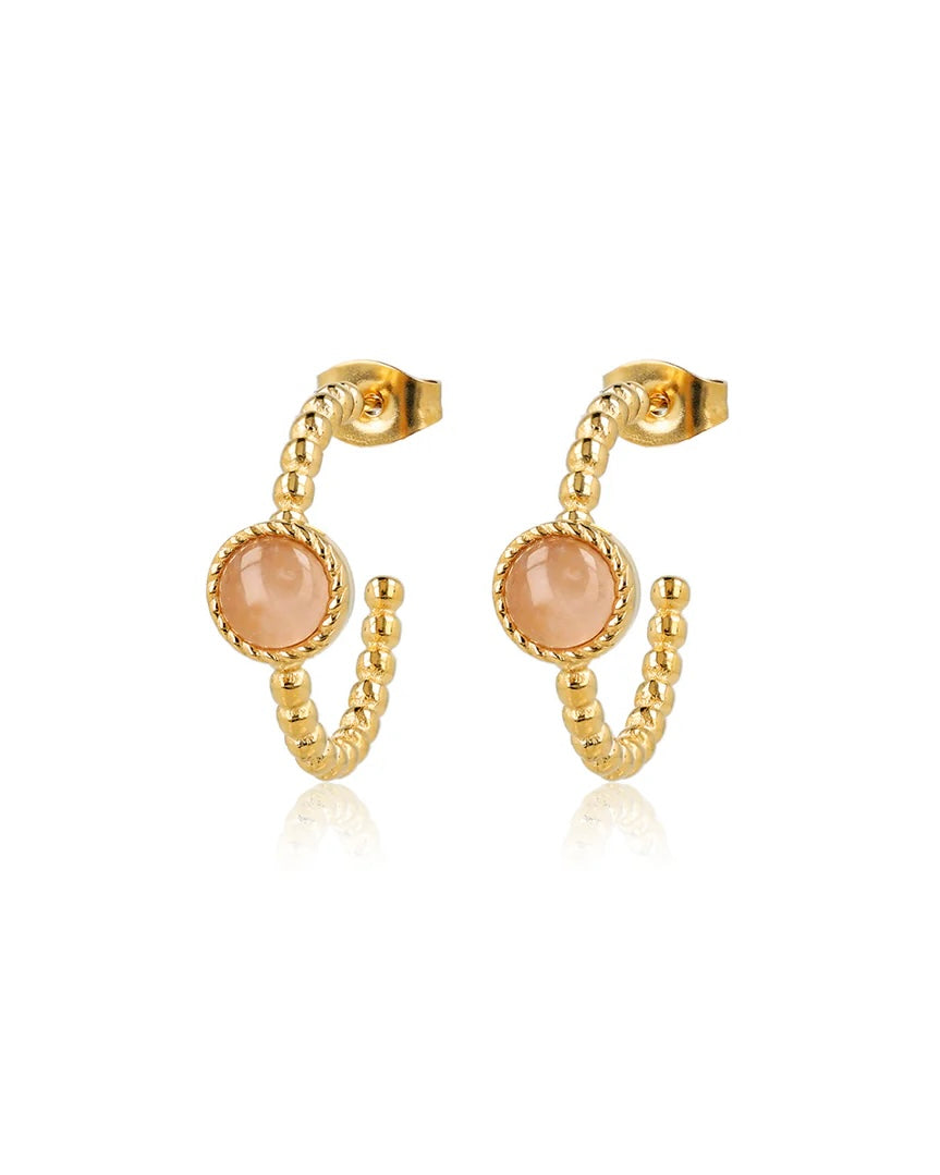Stijlvolle Gouden Oorbellen met Rozekwarts en Stainless Steel. De oorbellen zijn hypoallergeen.