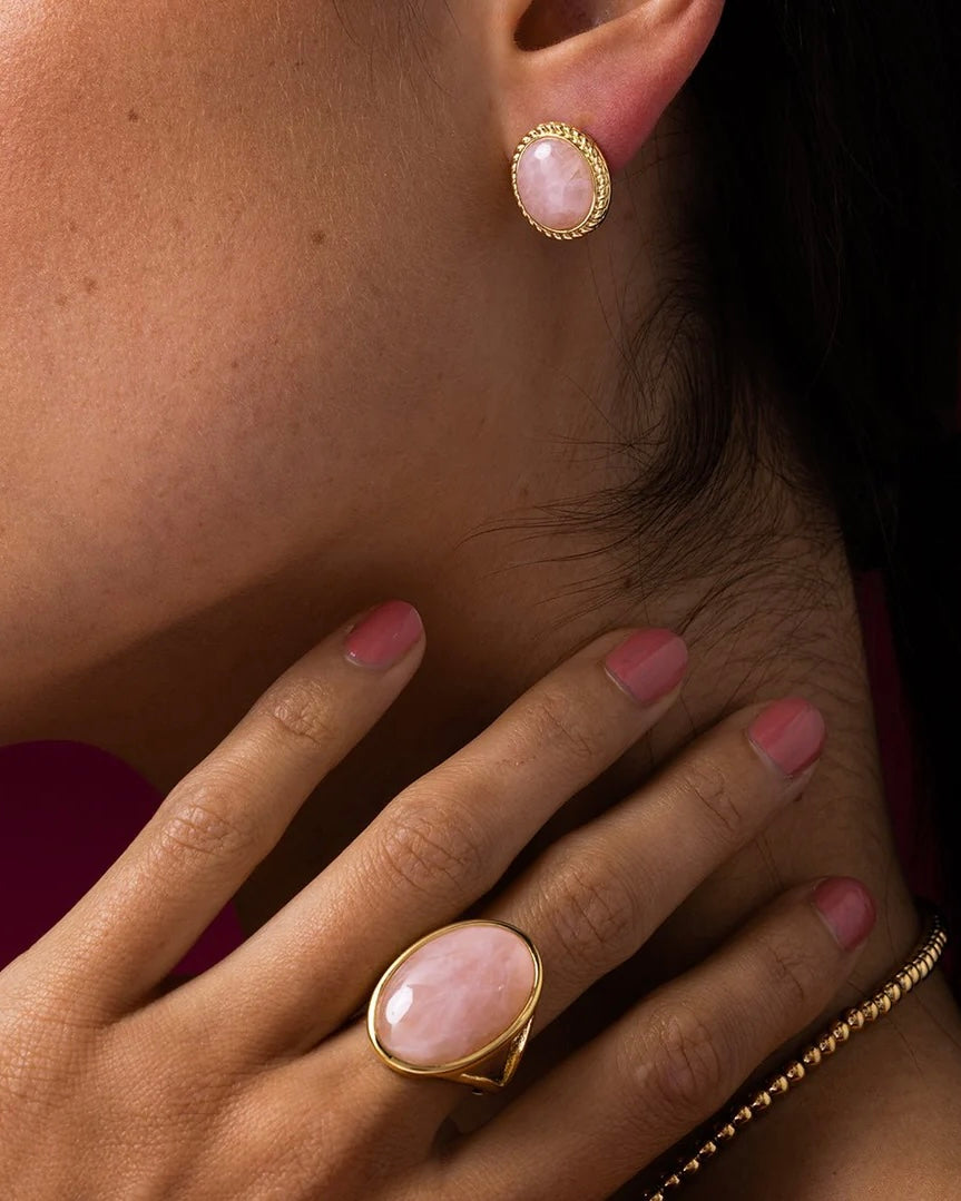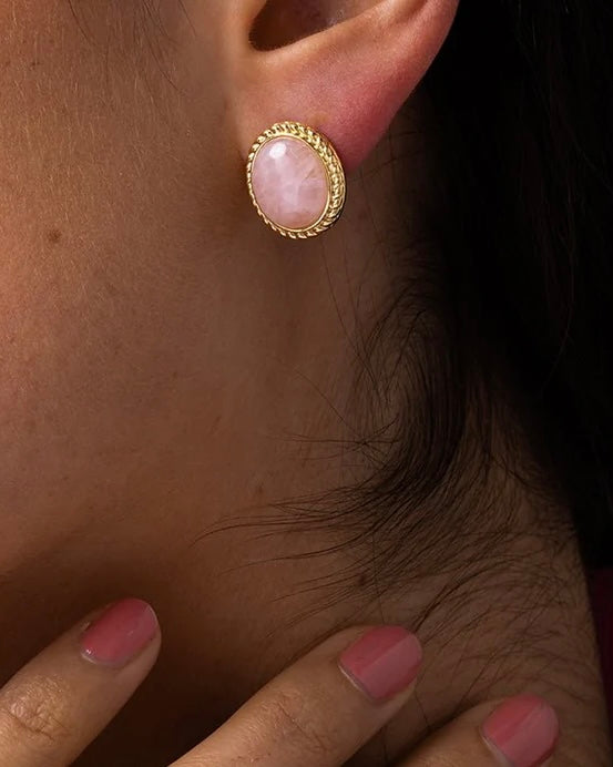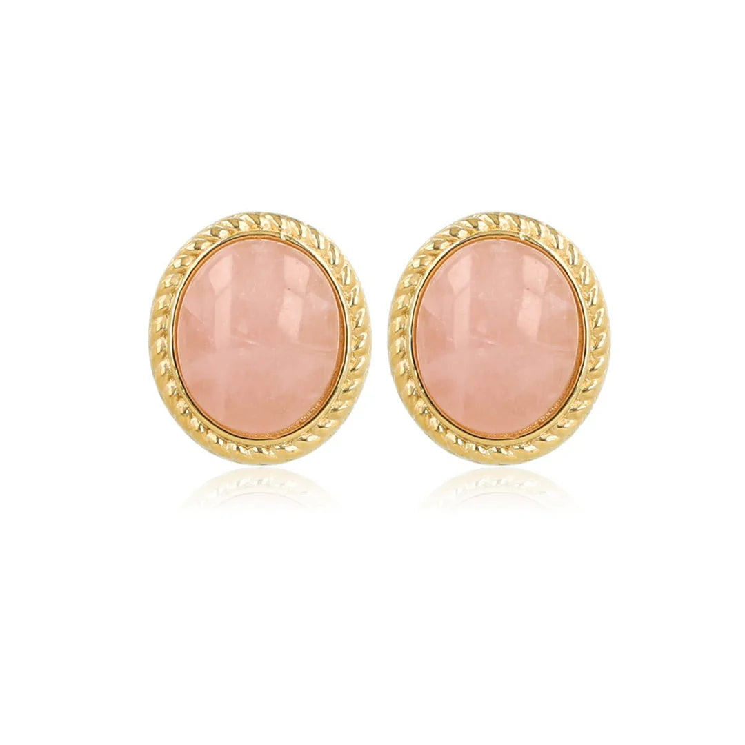 Stijlvolle Vintage Style Gouden Oorbellen met Rozekwarts en Stainless Steel. De oorbellen zijn hypoallergeen.