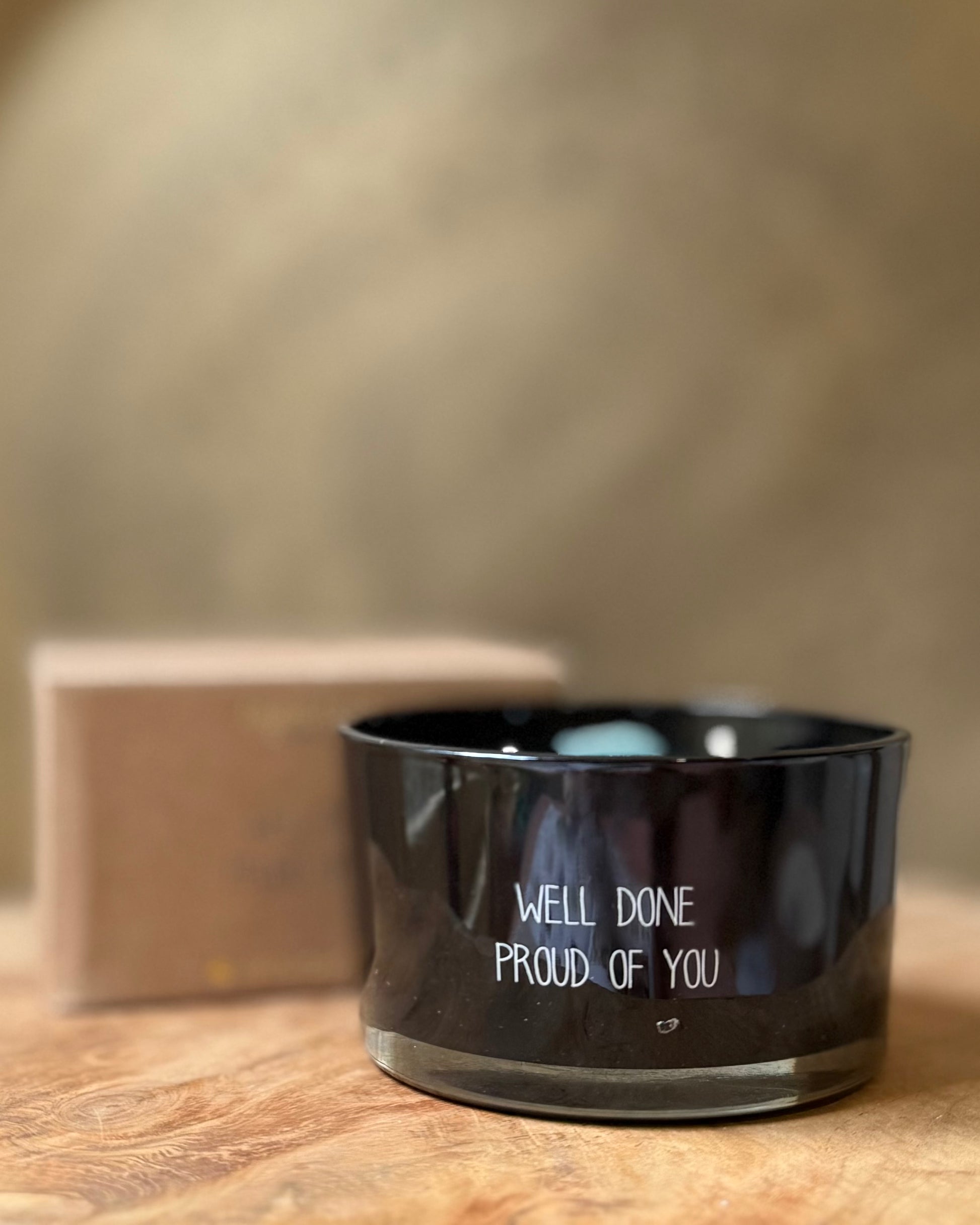 Een heerlijke geurkaars gemaakt van biologische sojawas. Deze kaars heeft de geur Warm Cashmere en brandt ca. 50 uur. Afmetingen: 11 x 11 x 6 cm.