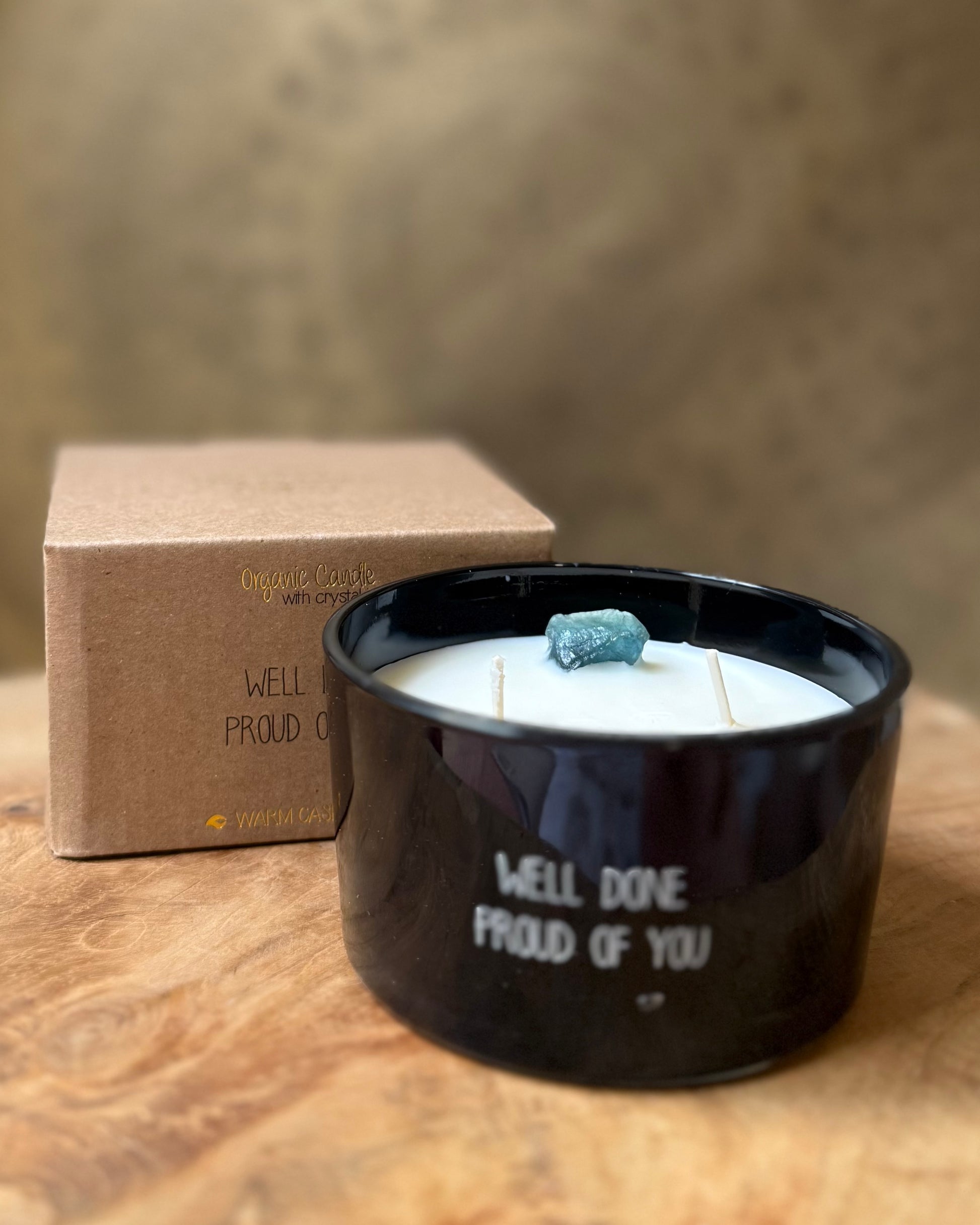 In deze geurkaars vind je een kristal; Regenboog Fluoriet. Naast een gezellige kaars die heerlijk ruikt, helpt de Regenboog Fluoriet in deze kaars je met nog meer focus, je geheugen en maakt het hoofd helder waardoor je informatie beter kunt verwerken en verbanden kunt leggen. Kortom, met deze steen helpt jou om elk komend doel in je leven te bereiken.