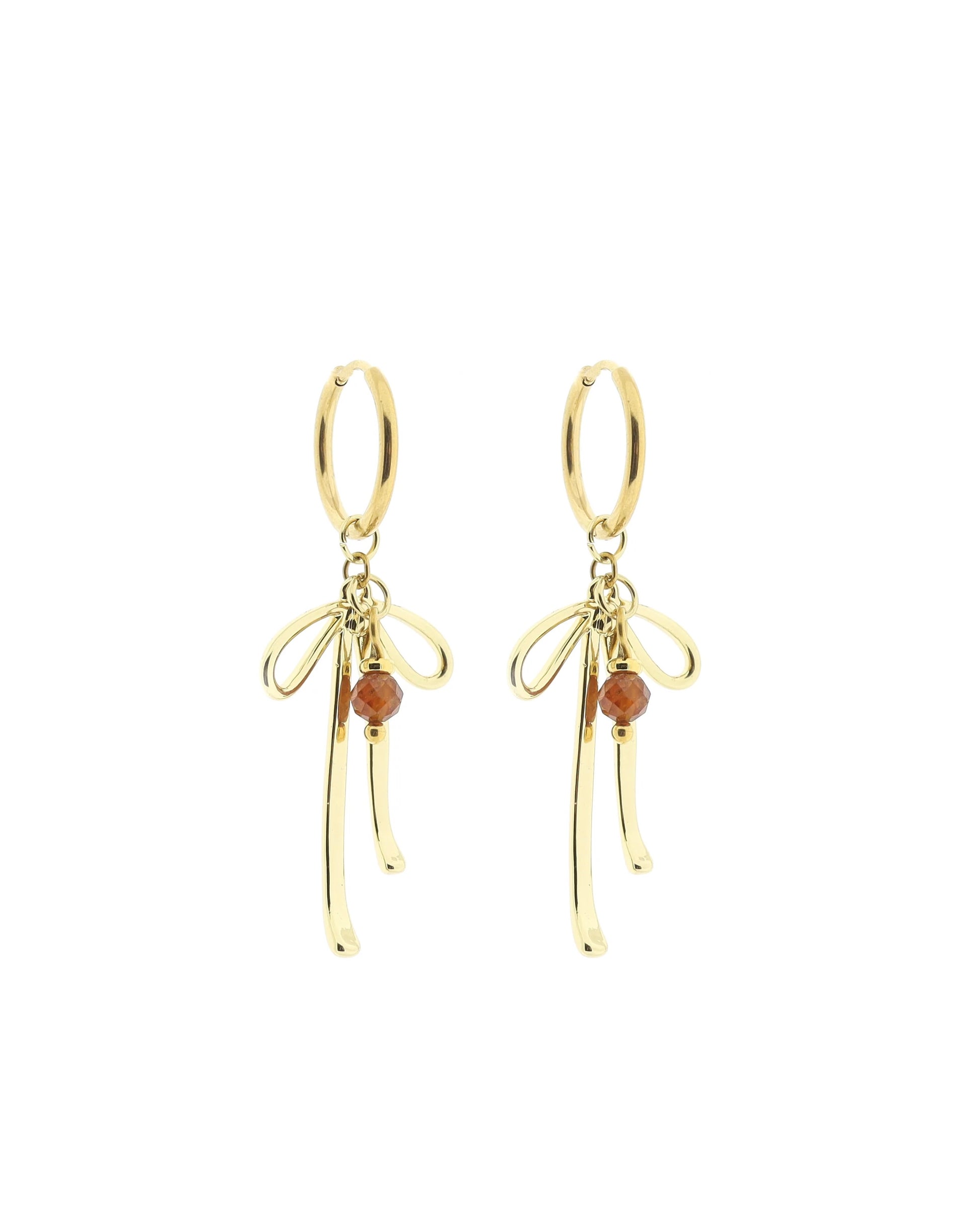 Deze Solid Gold oorbellen zijn gemaakt van Gold Plated hoogwaardig roestvrij staal en heeft een diameter van 15 mm. De oorbel is versierd met een toffe strik en een Granaat edelsteen kraaltje van 4 mm doorsnede.