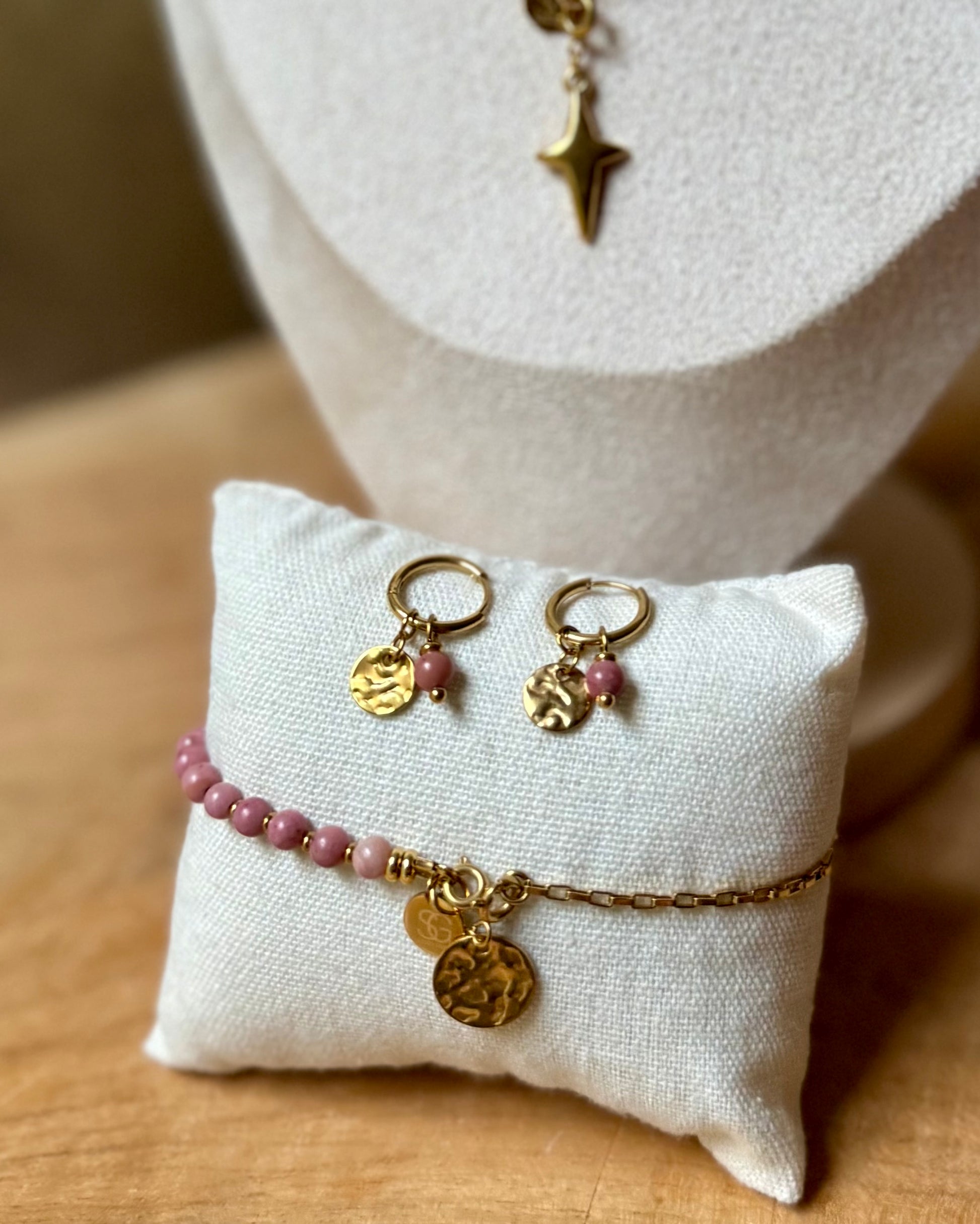 Maak het geheel af met de bijpassende ketting en armband voor een complete set.