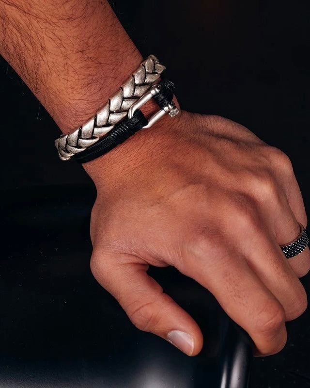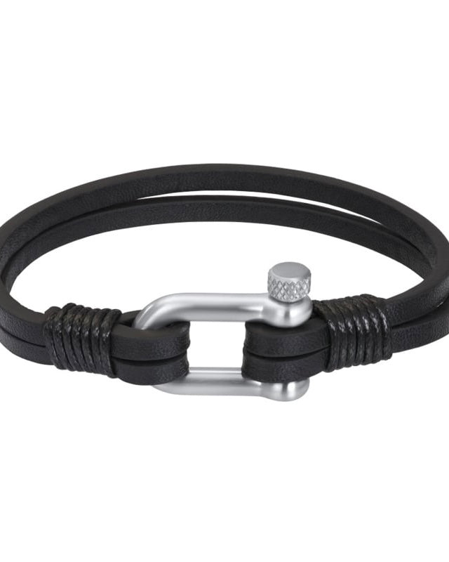 De armband Joey bestaat uit een zwarte leren band met een zilverkleurige stainless steel sluiting.