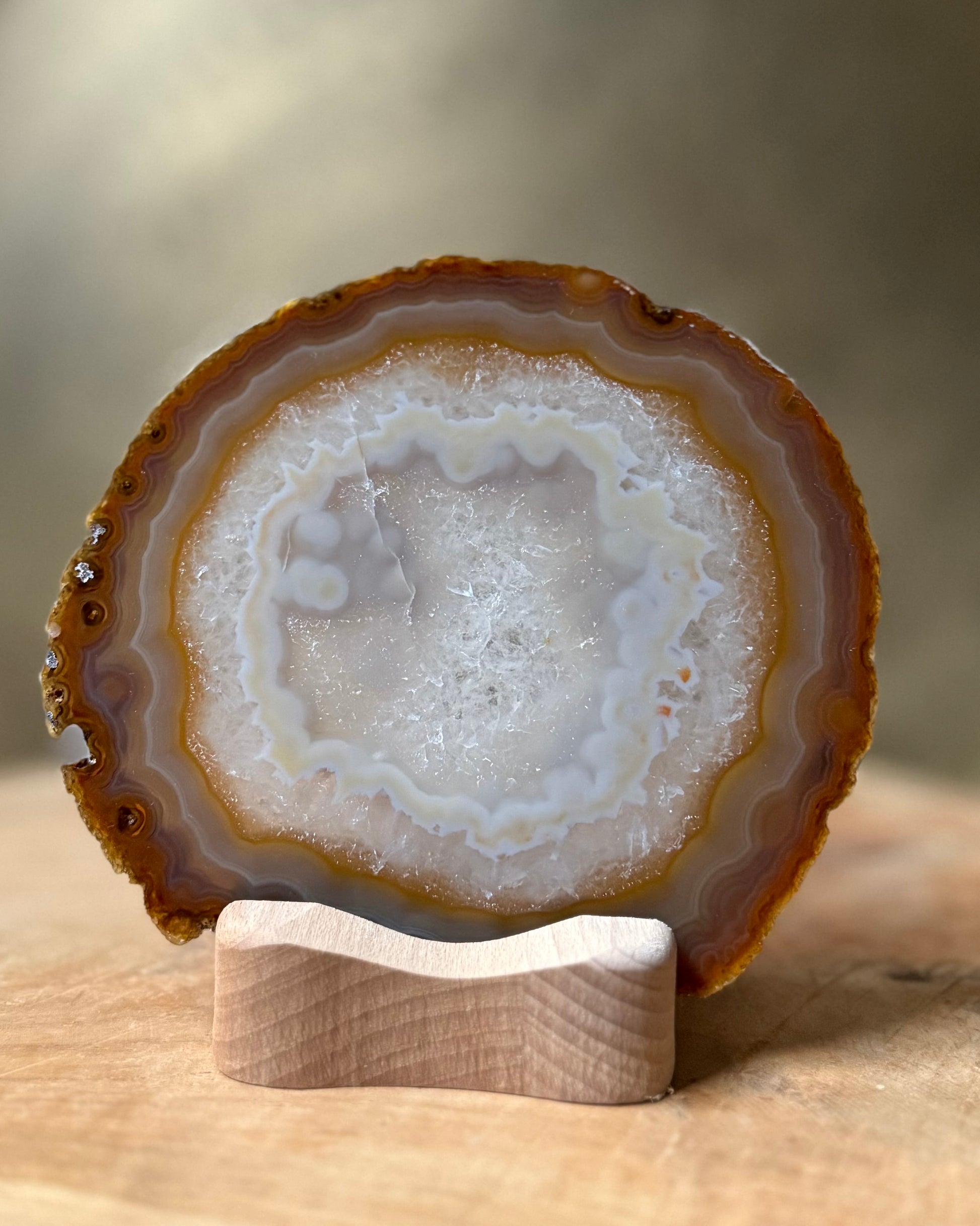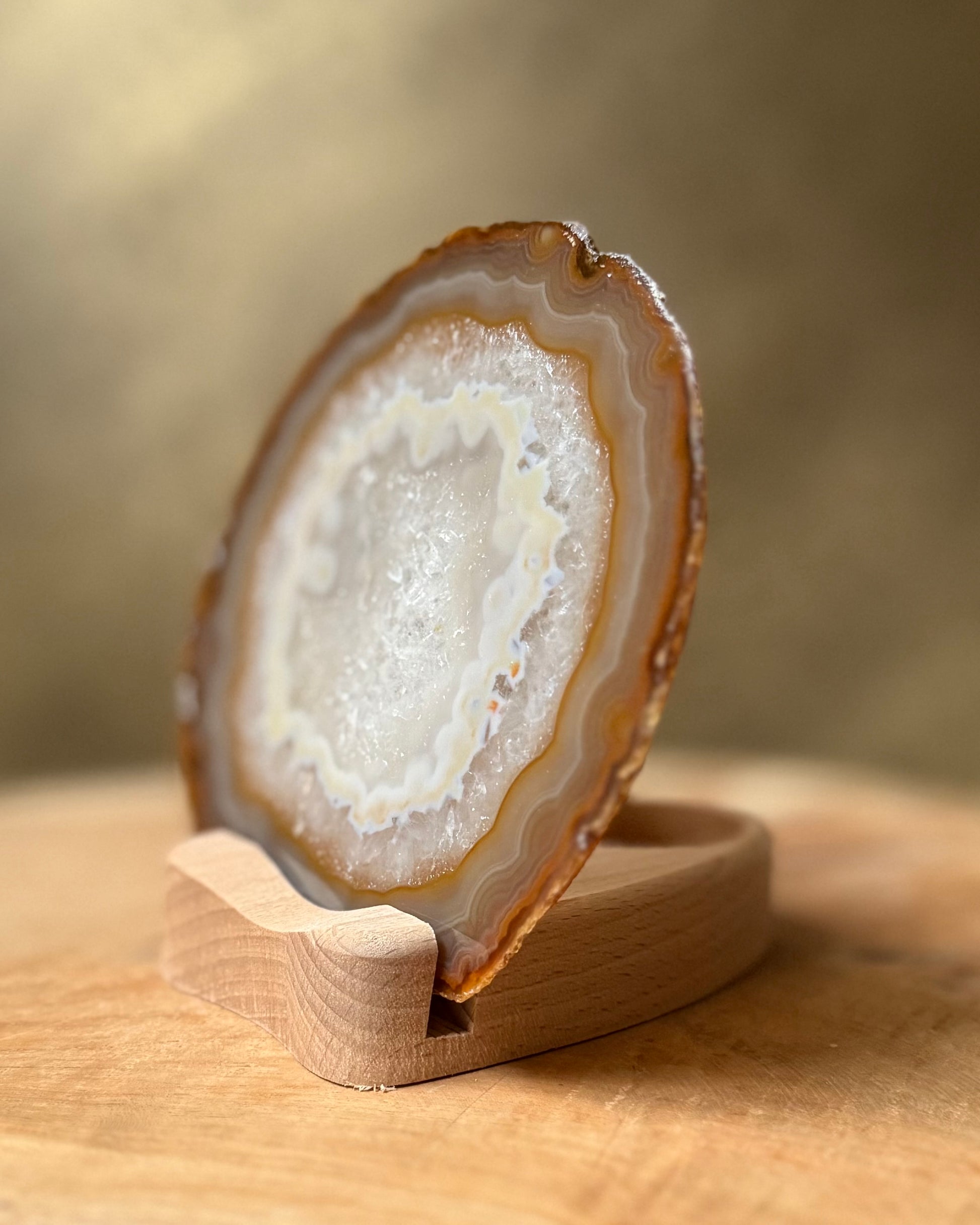 Agaat werkt aardend, stabiliserend en beschermend. De steen werkt kalmerend, laat je veilig voelen en zorgt voor zowel geestelijke als emotionele rust en balans. Het helpt jezelf accepteren en helpt vertrouwen hebben in jezelf.