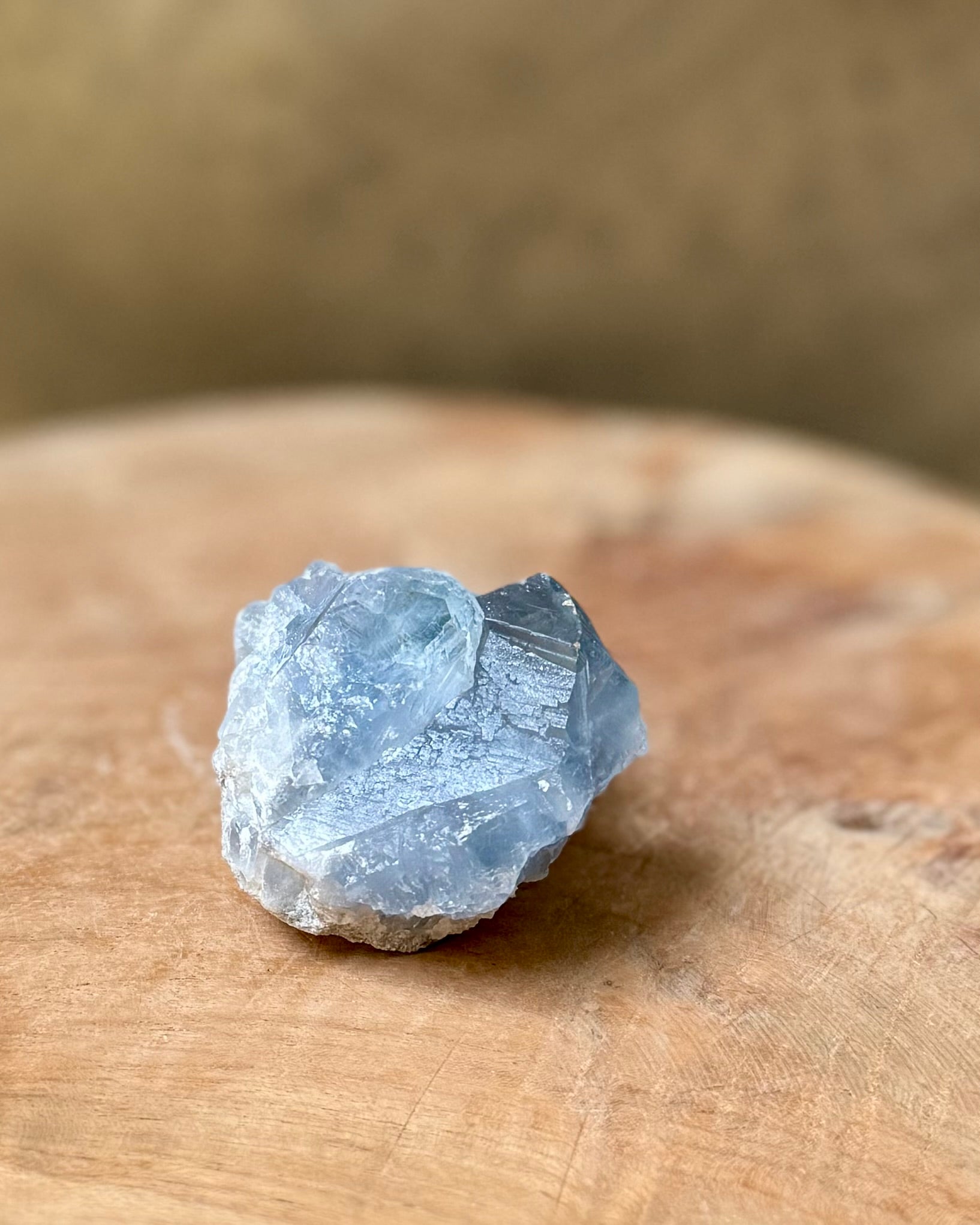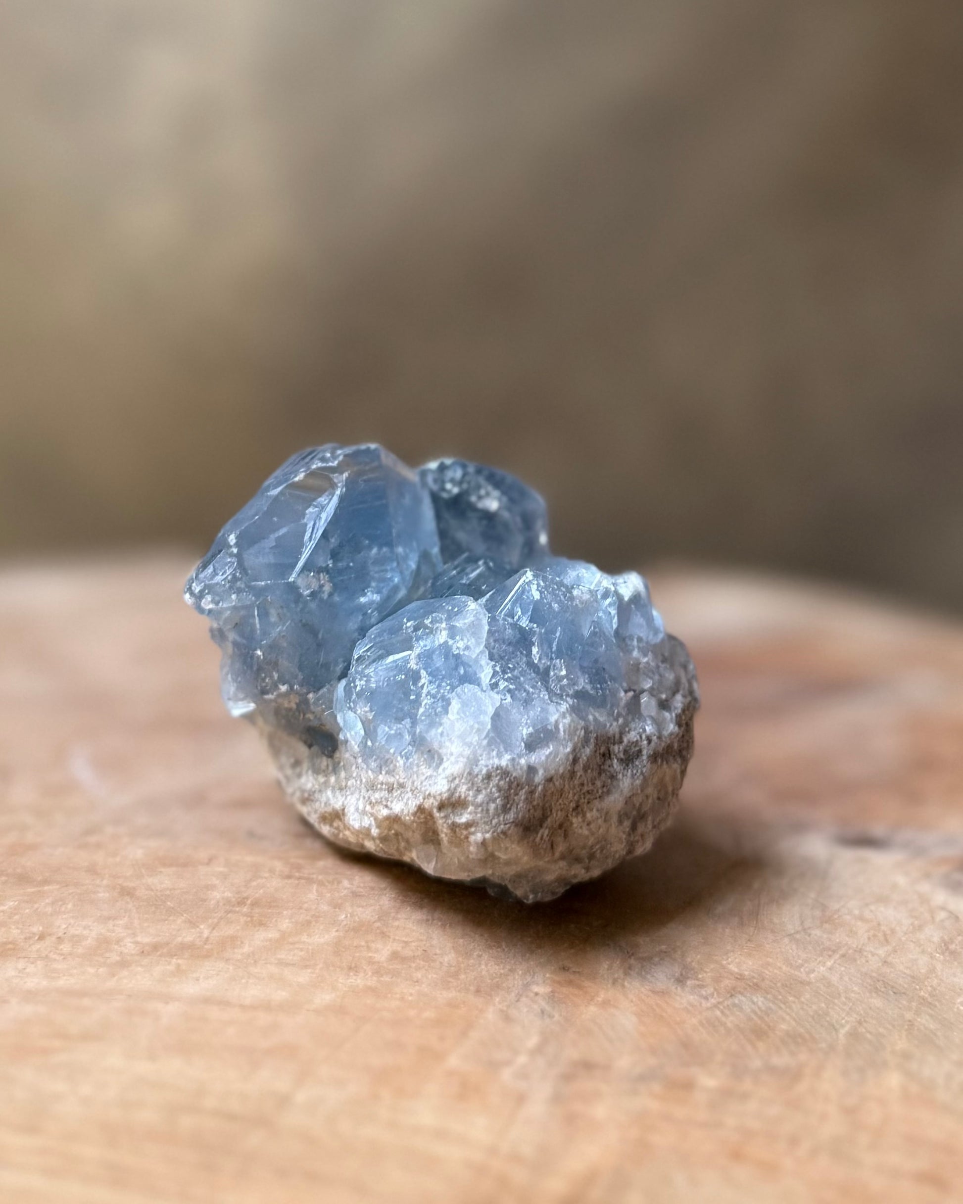 Dit stuk Celestien van A kwaliteit met blauwe kristallen van straalt rust en zachtheid uit. De steen staat bekend om zijn kalmerende energie en wordt vaak gebruikt om een serene en harmonieuze sfeer in huis te creëren.