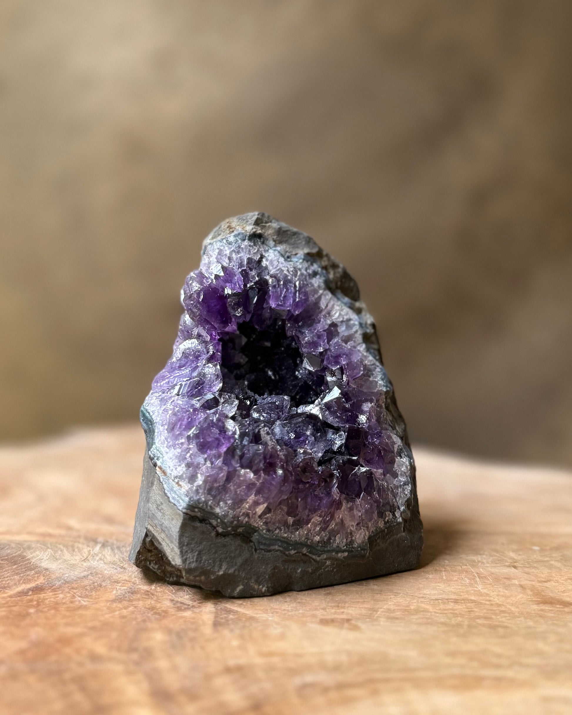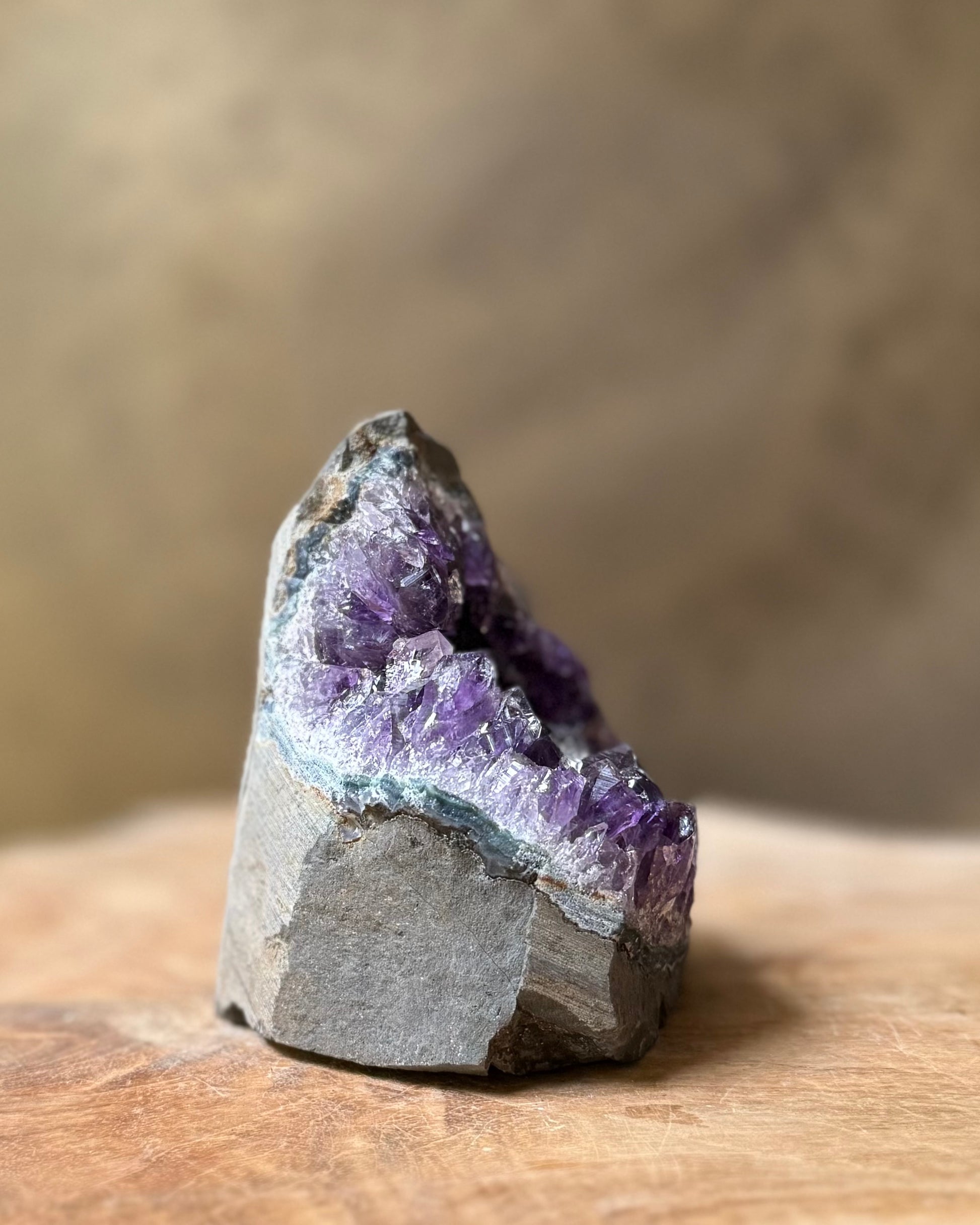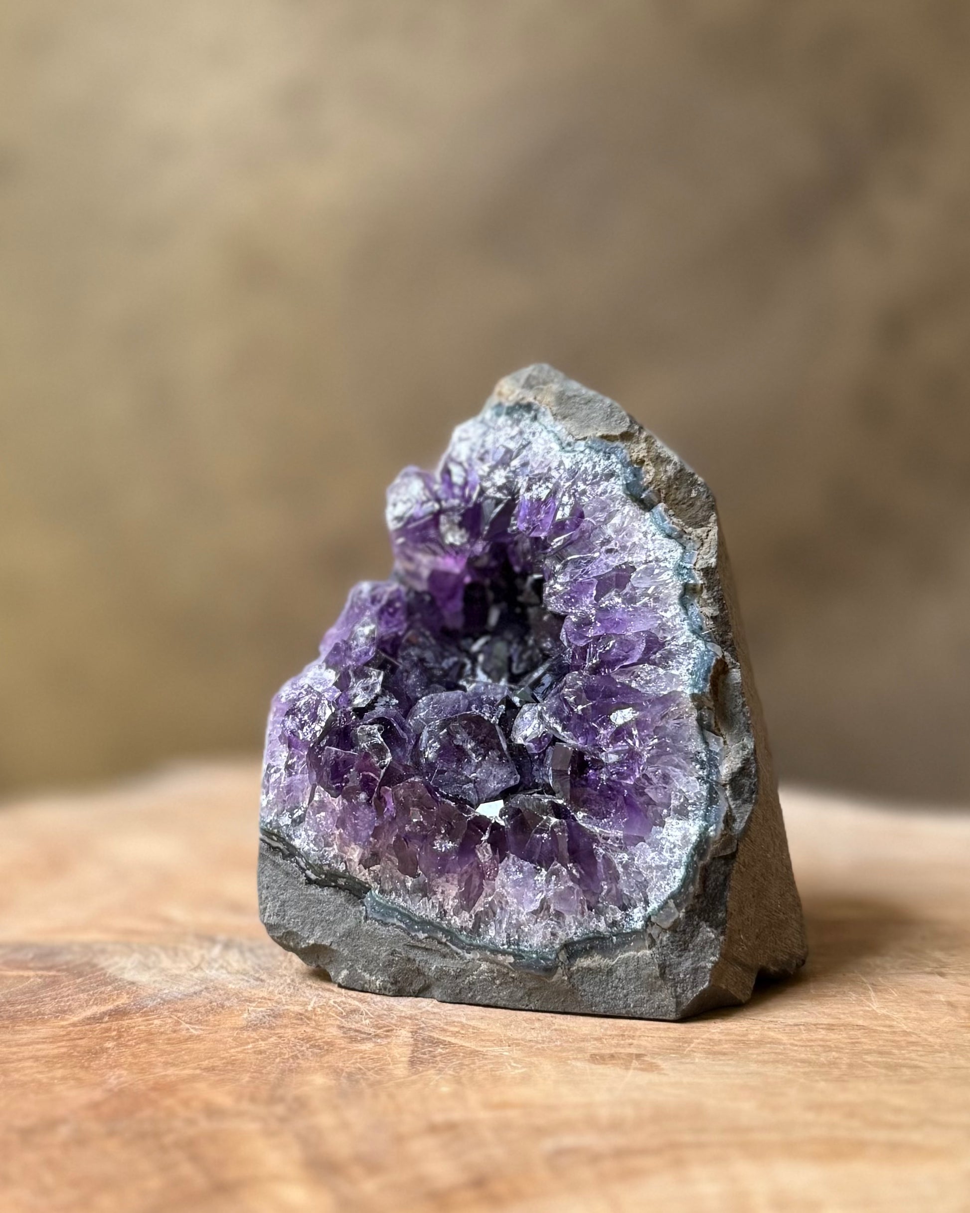 Amethist werkt beschermend, zuiverend, ontspannend, brengt harmonie en innerlijke rust. Het maakt je hoofd helder en geeft inzicht in je gedrag en in de keuzes die je maakt. Hierdoor helpt het slechte gewoontes en verslavingen te erkennen en achter je te laten.