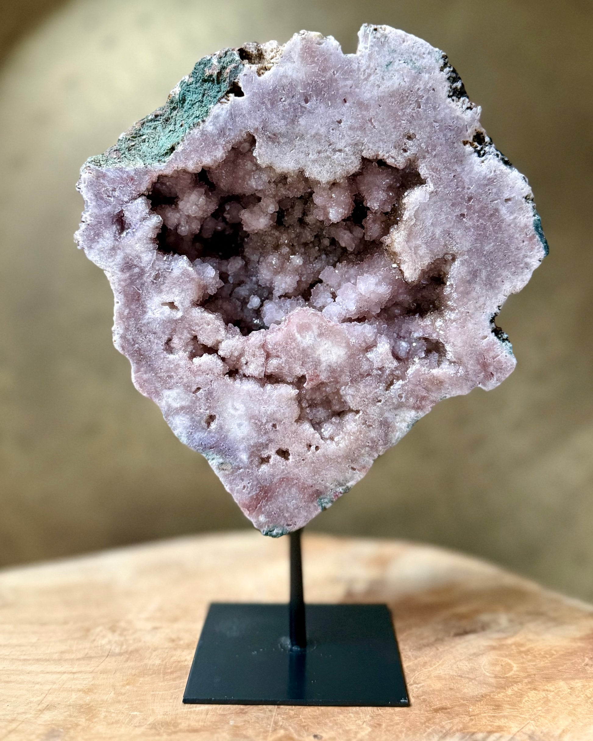 Roze Amethist is een prachtige en vrij zeldzame variant van de klassieke paarse amethist. Ze wordt gewaardeerd om haar zachte, liefdevolle uitstraling.