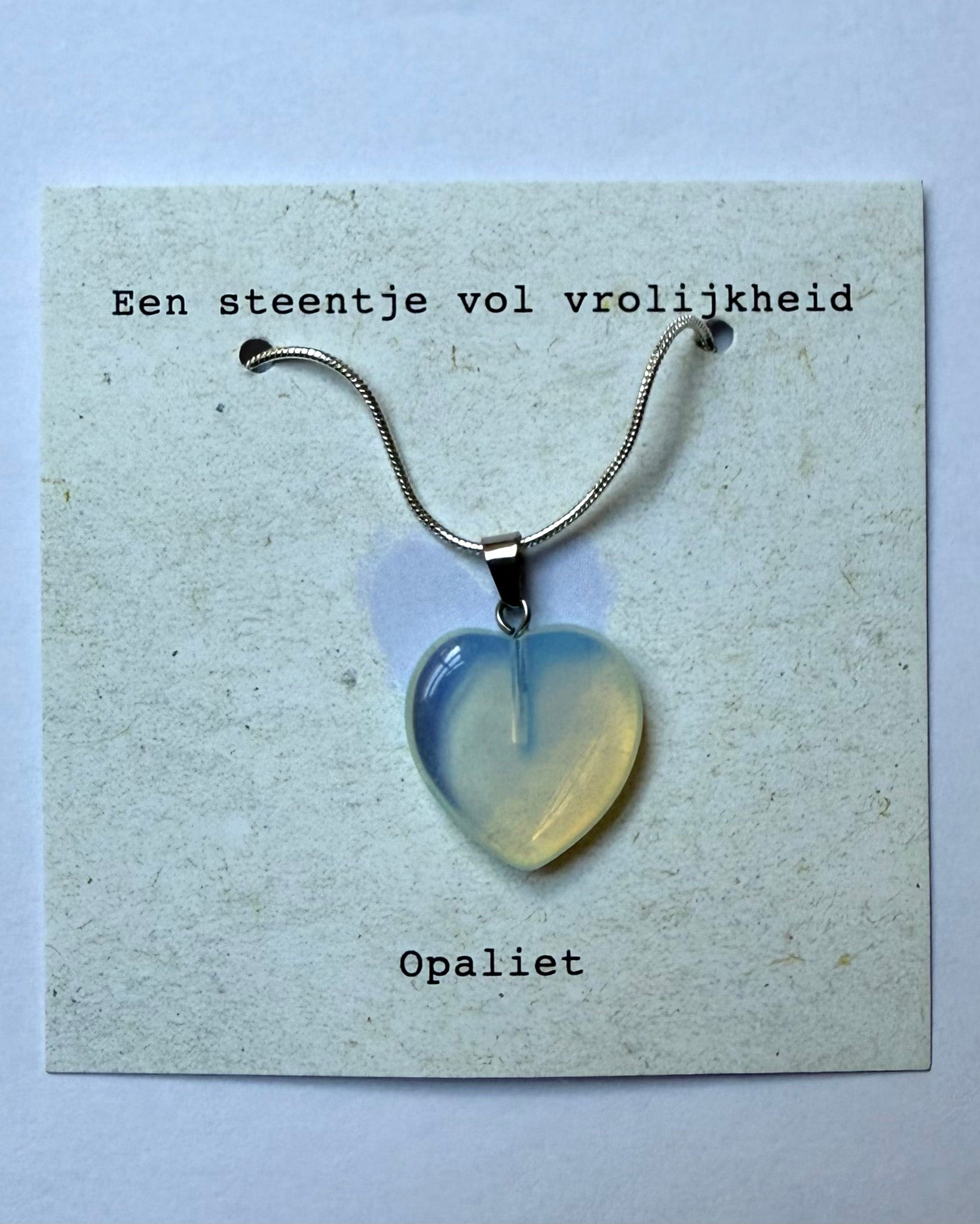 Verzilverde ketting met edelsteen hartje van Opaliet.