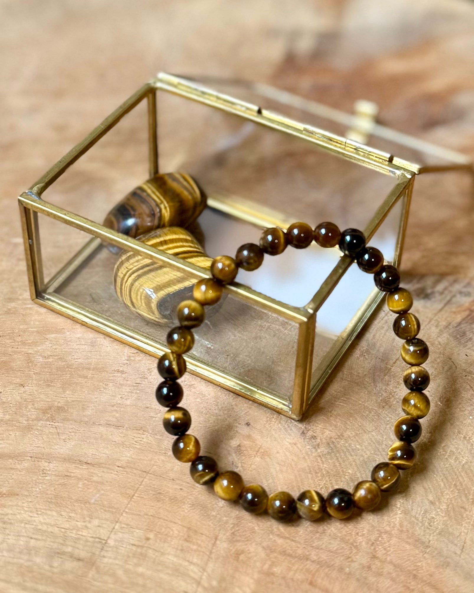 Tijgeroog werkt beschermend en aardend en brengt harmonie en balans. Het trekt geluk, voorspoed en succes aan. Het versterkt (zelf)vertrouwen, zelfinzicht, moed, doorzettingsvermogen, besluitvaardigheid, optimisme en een gevoel van eigenwaarde.