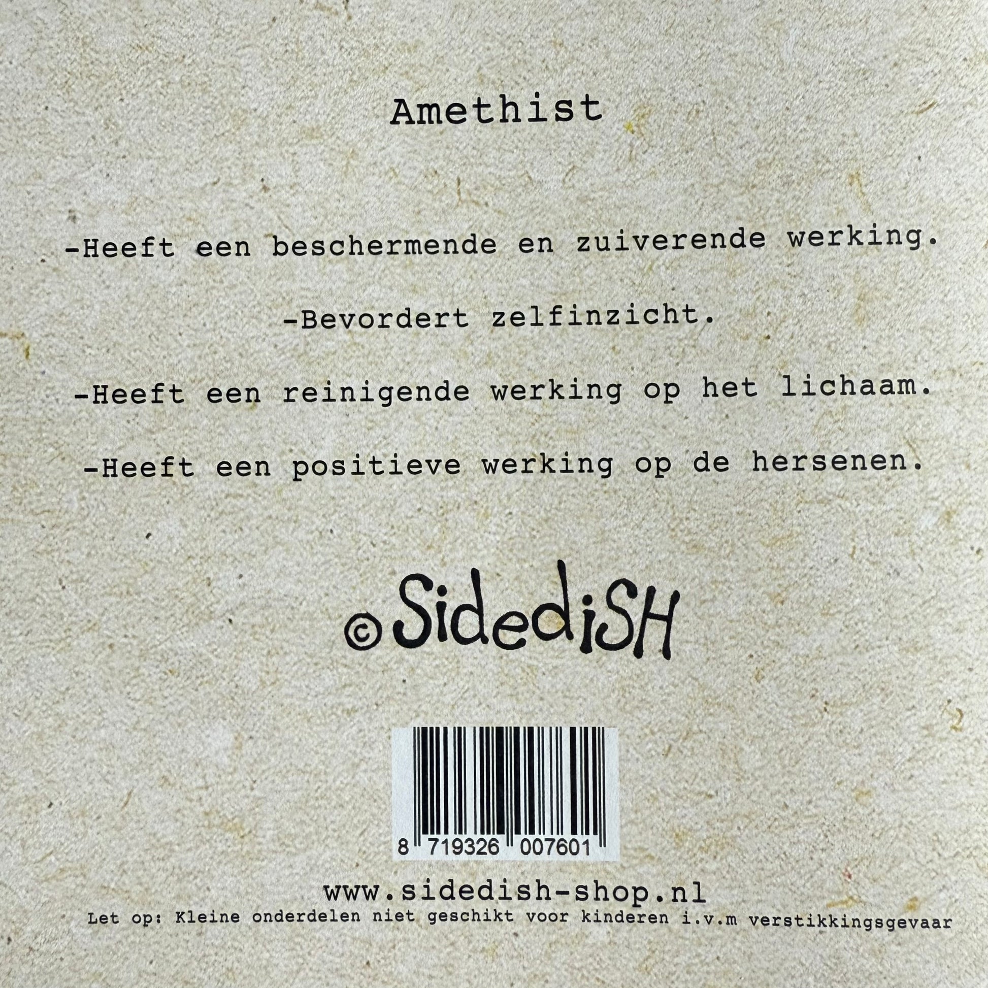Op de achterkant van de kaart staat de werking van de steen beschreven.