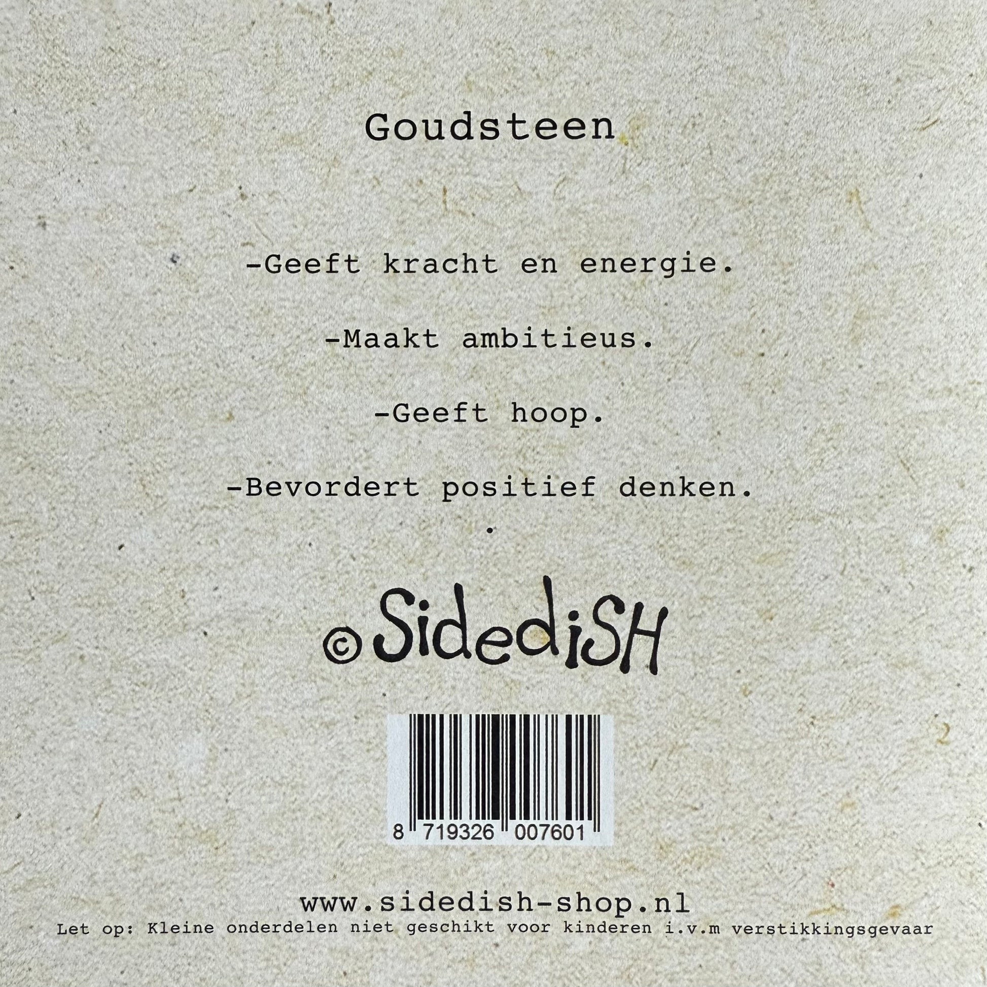 Op de achterkant van de kaart staat de werking van de steen beschreven.