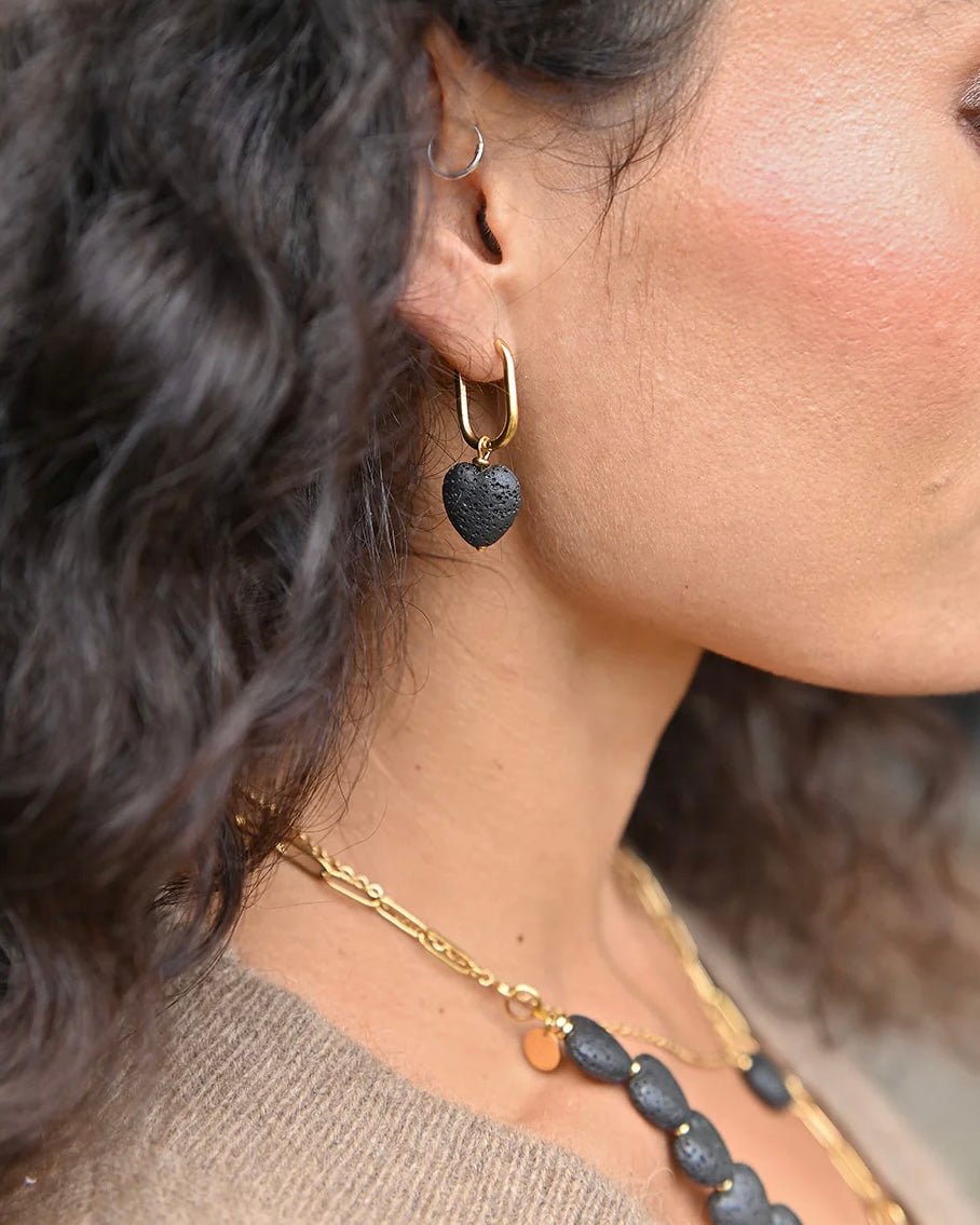 Oorbellen van een Lavasteen hartje van 14 mm. Deze oorbellen van Solid Gold passen perfect bij de Lava Love armbanden en kettingen.